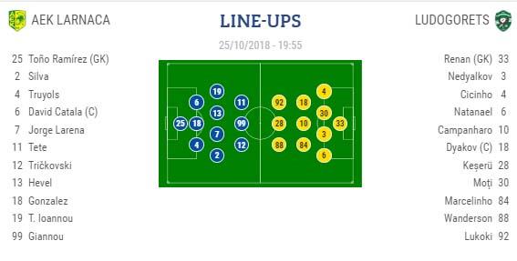 Ο τεχνικός της ομάδας των Λαρνακέων σε σύγκριση με το τελευταίο παιχνίδι με τη Δόξα παρατάσσει την ενδεκάδα του με τρεις αλλαγές, με τους Τρουγιόλς, Λαρένα και Γιάννου να παίρνουν τις θέσεις των Γκαρσία, Ασούμπρε και Φλοριάν.
