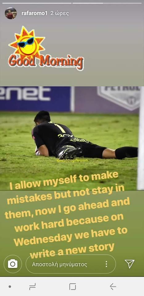 Το δικό του μήνυμα μετά το νικηφόρο παιχνίδι με την Αλκή, έστειλε μέσω του προσωπικού του λογαριασμού ο Ράφαελ Ρομό.