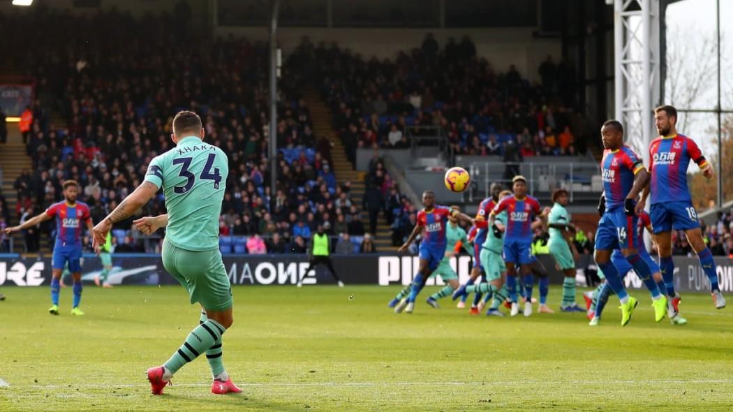 Το αριστερό του πόδι είναι διαβήτης, ειδικά στις εκτελέσεις φάουλ. Ο Γκράνιτ Τσάκα το απέδειξε ξανά και με ένα απίθανο φάουλ στο 51ο λεπτό ισοφαρίζει για την Άρσεναλ που είχε βρεθεί πίσω στο σκορ από την Κρίσταλ Πάλας από εύστοχη εκτέλεση πέναλτι του Λούκα Μιλιβόγεβιτς.