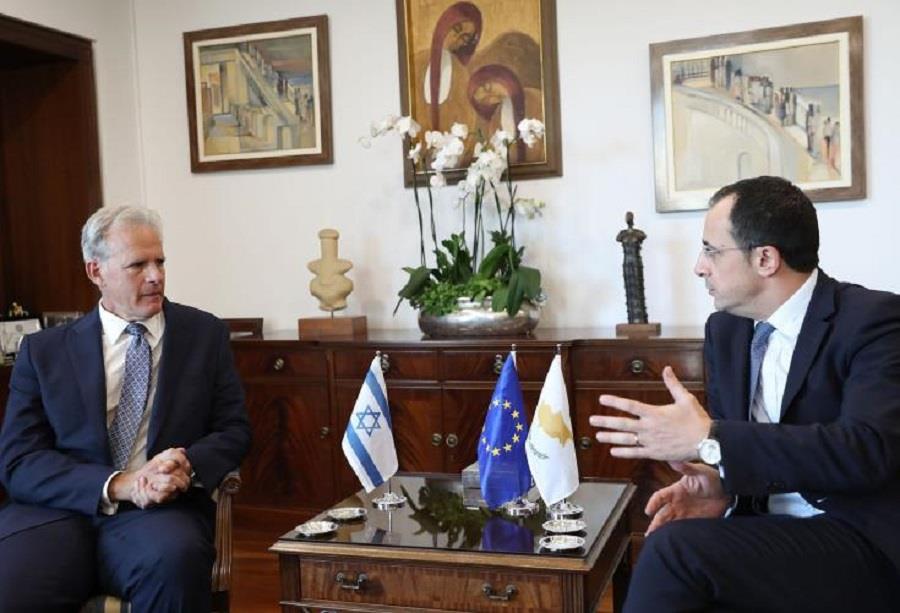 Η τριμερής συνεργασία, διμερή θέματα και οι ενεργειακές εξελίξεις συζητήθηκαν στη συνάντηση που είχε ο Υπουργός Εξωτερικών Νίκος Χριστοδουλίδης με τον Υφυπουργό παρά τω Πρωθυπουργώ του Ισραήλ για θέματα Δημόσιας Διπλωματίας Michael Oren, ο οποίος πραγματοποιεί επίσκεψη εργασίας στην Κύπρο κατόπιν σχετικής πρόσκλησης που του είχε απευθύνει η κυπριακή πλευρά.