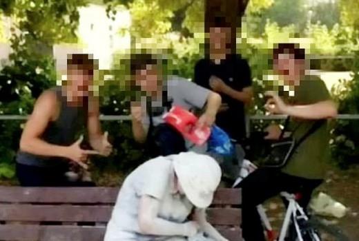 Μία φωτογραφία που δείχνει τους έφηβους πίσω από το θύμα τους, να γελούν και να δείχνουν την ανυπεράσπιστη γυναίκα, αποτέλεσε αφορμή για ένα διαδικτυακό «κυνήγι» εντοπισμού των δραστών.