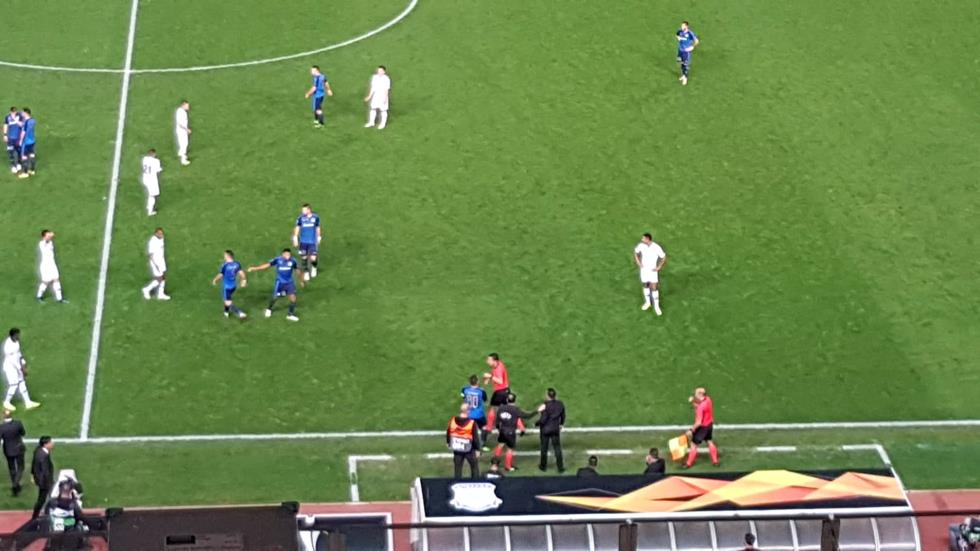 Ο Κύπριος τεχνικός αποβλήθηκε από το διαιτητή μετά από μία αντιπαράθεση με τον Στεντέρα, που προκάλεσε τη σύρραξη με τους παίκτες των φιλοξενουμένων να τα βάζουν με τον τεχνικό των κυανολεύκων.