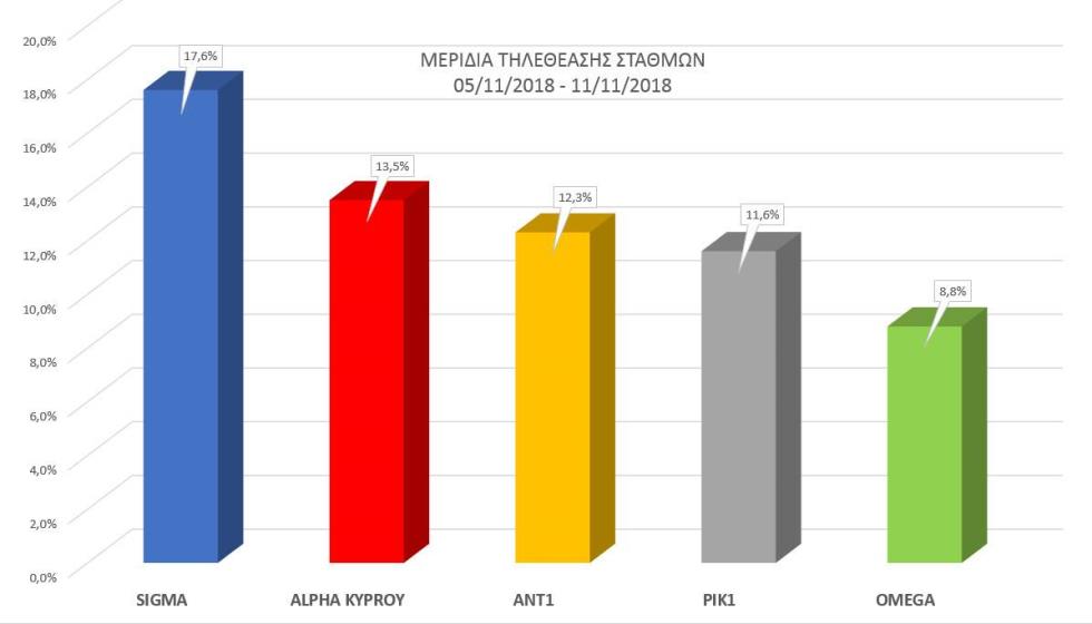 Το κανάλι που έκοψε το νήμα της πρωτιάς δε είναι άλλο από το Sigma που για άλλη μια εβδομάδα βρέθηκε στην κορυφή των προτιμήσεων με γενικό μέσο όρο το 17,6%