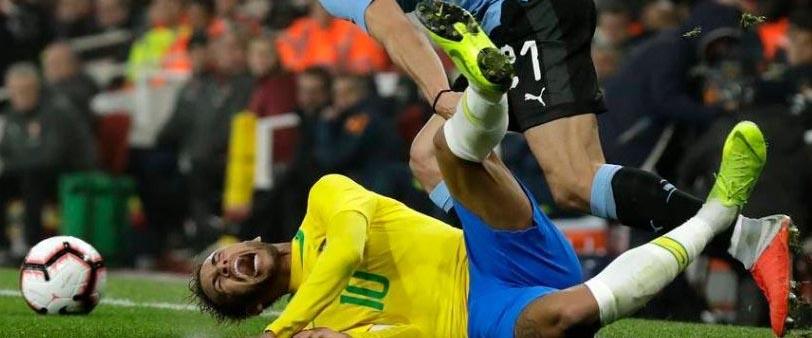 Ο Καβάνι με τάκλιν έριξε στον αγωνιστικό χώρο τον Νεϊμάρ, ο οποίος άρχιζε να σφαδάζει. Βέβαια, στη συνέχεια σηκώθηκε γρήγορα, με τον Ουρουγουανό άσο να του δίνει το χέρι.