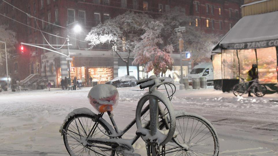 Εντυπωσιακές εικόνες: Ξαφνική χιονοθύελλα «έντυσε» στα λευκά τη Νέα Υόρκη