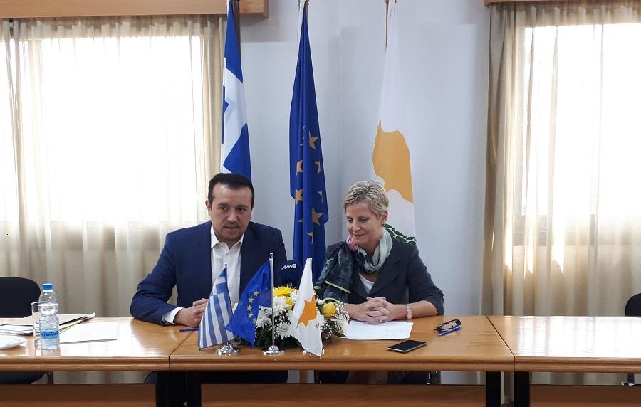 Την περαιτέρω ενίσχυση, μέσω της επιτάχυνσης των διαδικασιών ανταλλαγής τεχνογνωσίας και εμπειρίας, της διμερούς συνεργασίας στους τομείς αρμοδιότητας τους αποφάσισαν σε διαβουλεύσεις που είχαν σήμερα στη Λευκωσία η Υπουργός Μεταφορών, Επικοινωνιών και Έργων Βασιλική Αναστασιάδου και ο Υπουργός Ψηφιακής Πολιτικής, Τηλεπικοινωνιών & Ενημέρωσης της Ελλάδας Νίκος Παπάς στο πλαίσιο επίσημης επίσκεψης που πραγματοποιεί στην Κύπρο.