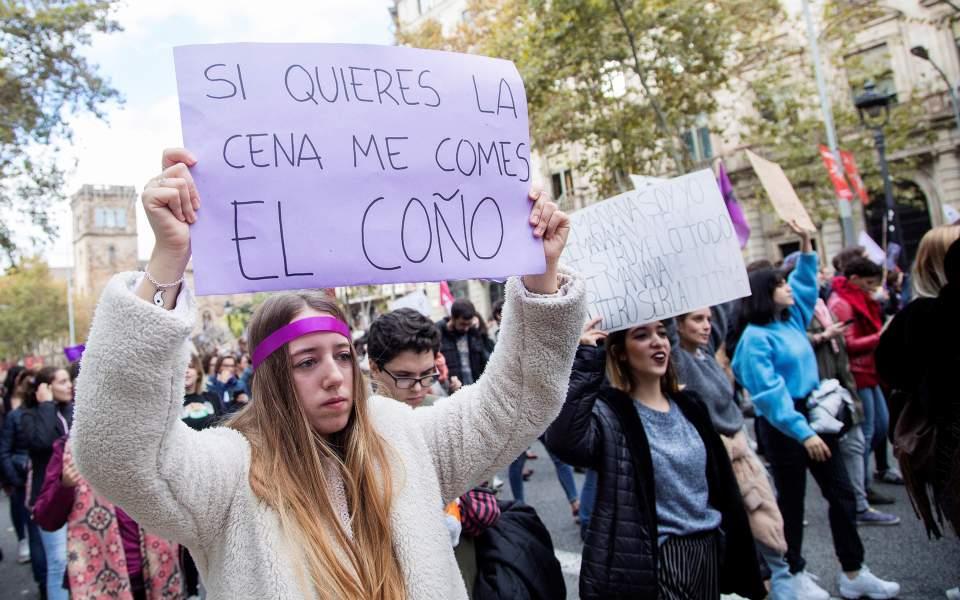 Στην Μαδρίτη, η διαμαρτυρία ολοκληρώθηκε με την ανάγνωση των ονομάτων 44 γυναικών που έχασαν την ζωή τους στην Ισπανία, τον τελευταίο χρόνο και σε περιστατικά ενδοοικογενειακής βίας.