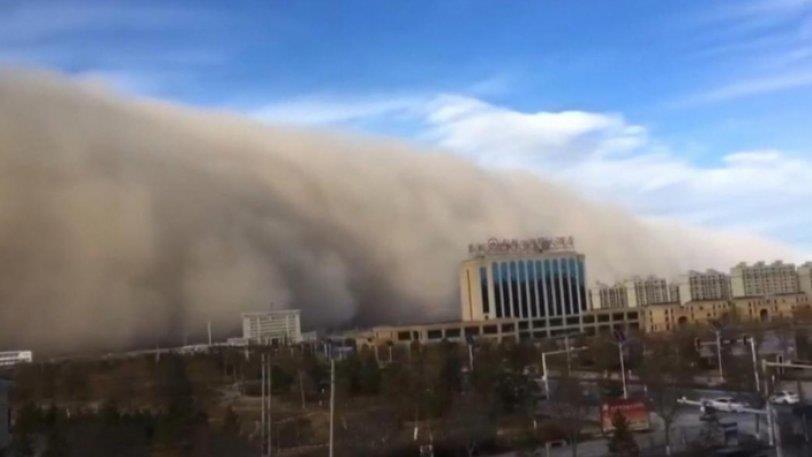 Στο βίντεο που μετέδωσε ο κρατικός σταθμός CCTV φαίνεται ένας «γκρίζος τοίχος» άμμου να πλήττει την πόλη Ζάνγκιε και έπειτα να απλώνεται στην πόλη μια «κίτρινη ομίχλη».