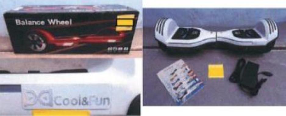 Ανακοίνωση από το Τμήμα Επιθεώρησης Εργασίας του Υπουργείου Εργασίας αναφέρει ότι το σκούτερ είναι "εμπορικής επωνυμίας Cool&Fun (scooter), Shenzhen Fuyuan (charger), ονομασίας Balance Wheel, με τύπο/αριθμό μοντέλου BG-P001/6.5 (scooter) FY4202000 (power charger) και άγνωστο γραμμικό κωδικό παρτίδας".