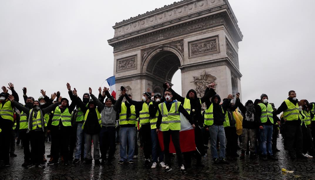 Αφού διαλύθηκαν στην πλατεία της Αψίδας του Θριάμβου, οι διαδηλωτές, μερικοί από τους οποίους φορούσαν κουκούλες και μάσκες, κατέφυγαν στις γύρω λεωφόρους, διαπίστωσε δημοσιογράφος του Γαλλικού Πρακτορείου.