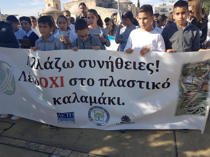 Με πλακάτ στα οποία αναγράφονταν συνθήματα όπως " αλλάζω συνήθειες ! Λέω ΟΧΙ στο πλαστικό καλαμάκι" οι μαθητές έστειλαν τα δικά τους μηνύματα.