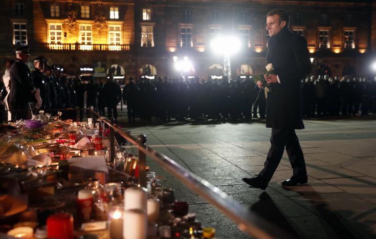 Ο Γάλλος Πρόεδρος στάθηκε ακίνητος τηρώντας ενός λεπτού σιγή στην κεντρική πλατεία του Στρασβούργου Κλεμπέρ, κοντά στο σημείο όπου χτυπήθηκαν τα θύματα της επίθεσης του φερόμενου ως δράστη της επίθεσης, του Σερίφ Σεκάτ.
