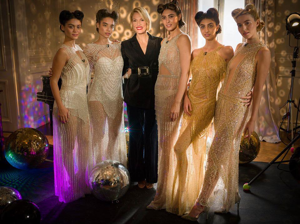 Στη δοκιμασία αποχώρησης του GNTM, τα υποψήφια μοντέλα έπρεπε να ποζάρουν γεμάτες χάρη και κομψότητα πάνω σε discoballs, φορώντας βαριές και ακριβές haute couture τουαλέτες.