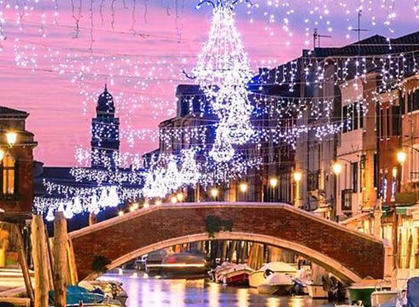 Η Βενετία έχει φορέσει εδώ και καιρό τα γιορτινά της. Οι επισκέπτες μπορούν να θαυμάσουν τη γοτθική αρχιτεκτονική της πόλης, τα πολύχρωμα στολισμένα κτίρια και τις εντυπωσιακές πλατείες.