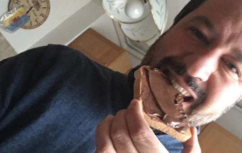 Στη φωτογραφία που ανήρτησε ο Σαλβίνι, φαίνεται να τρώει μια φέτα ψωμί με σοκολάτα και γράφει: «ξεκινάω τη μέρα μου με ψωμί και Nutella, εσύ;».