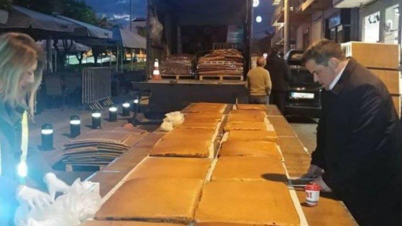 Βασιλόπιτα - γίγας βάρους 3,5 τόνων στήνουν στο Περιστέρι σε κεντρικό δρόμο της πόλης.