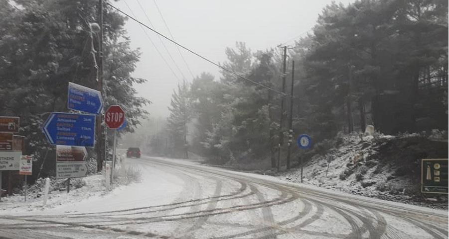 Σύμφωνα με αστυνομική ανακοίνωση, ο δρόμος Προδρόμου-Τροόδους είναι ανοικτός μόνο για οχήματα εφοδιασμένα με αντιολισθητικές αλυσίδες ή με κίνηση και στους τέσσερις τροχούς.