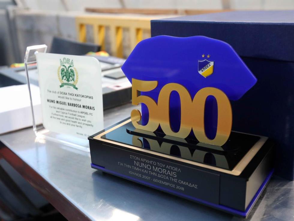 Στα αξιοσημείωτα επίσης, ήταν και η βράβευση του Νούνο Μοράις που συμπλήρωσε 500 συμμετοχές με τη γαλαζοκίτρινη φανέλα.