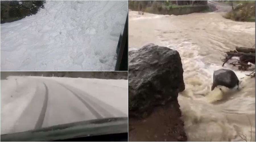 Αρκετά προβλήματα παρουσιάζει το οδικό δίκτυο από τη χιονόπτωση στα ορεινά και τις καταρρακτώδεις βροχές σε πολλές περιοχές στην Κύπρο.