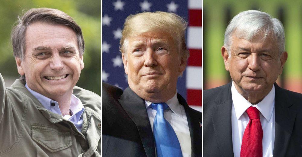 Οι τρεις αμερικανοί γίγαντες, δηλαδή οι Ηνωμένες Πολιτείες, η Βραζιλία και το Μεξικό όπου ζουν τα 660 εκατομμύρια από το ένα δισεκατομμύριο κατοίκων της αμερικανικής ηπείρου, κυβερνώνται πλέον από τρεις εθνικιστές πολιτικούς. Η γεωπολιτική της Αμερικής θα περιστρέφεται τα επόμενα χρόνια γύρω από αυτούς τους ιδιότυπους ηγέτες, για τους οποίους η εξωτερική πολιτική δεν νοείται χωρίς προηγούμενη ενίσχυση της εσωτερικής. Ένα ασυνήθιστο τρίο, με προεξάρχουσες ασφαλώς τις ΗΠΑ, τον Ζαϊρ Μπολσονάρο να επιδιώκει να αποτελεί τον προνομιακό της εταίρο και την κυβέρνηση του Αντρές Μανουέλ Λόπες Ομπραδόρ να φοβάται ότι θα απομονωθεί.