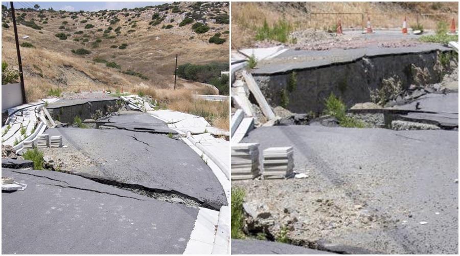 Χαλασμός Κυρίου στην Πάφο- Καθίζηση δρόμου και υποχώρηση κιγκλιδώματος (pics)