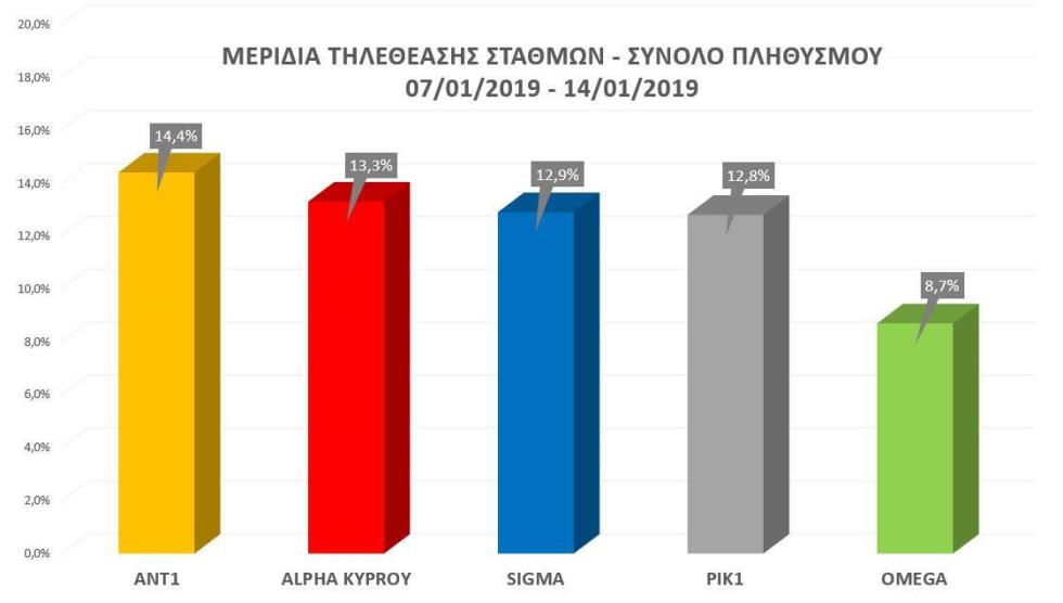 Τέταρτο κανάλι κατετάγη το ΡΙΚ! Το κρατικό κανάλι κατέγραψε γενικό μέσο όρο 12,80%