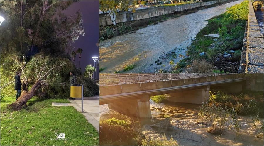 Συγκεκριμένα, οι Πυροσβεστικοί Σταθμοί Λευκωσίας δέχθηκαν 19 κλήσεις για άντληση όμβριων υδάτων από υποστατικά, πτώση δέντρων σε οικίες, δημόσιους δρόμους και σταθμευμένα οχήματα και μετακινήσεις διαφημιστικών πινακίδων.