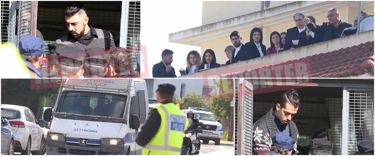 Παρότι στο σημείο βρίσκονταν και οι άλλοι δύο κατηγορούμενοι, Σάρα Σιάμς και Λευτέρης Σολωμού, εντούτοις παρέμειναν μέσα στα οχήματα της Αστυνομίας, φρουρούμενοι από αστυνομικούς.