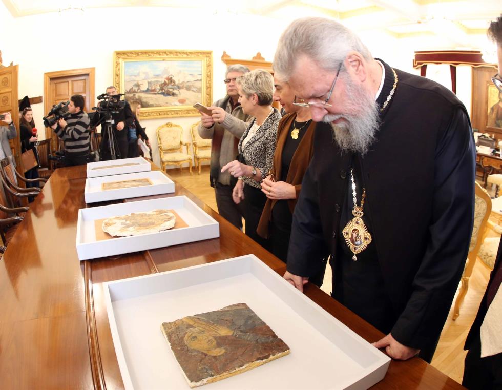Ανέφερε επίσης ότι «η Εκκλησία Κύπρου, η Αρχιεπισκοπή ιδιαίτερα, είναι αποφασισμένη να συνεργαστεί με την Κυβέρνηση, το Τμήμα Αρχαιοτήτων και όλους ούτως ώστε όσο μπορούμε αυτά τα κλεμμένα που βρίσκονται σε διάφορες χώρες και της Ευρώπης και της Αμερικής, όσα μπορούμε να επαναπατρίσουμε».
