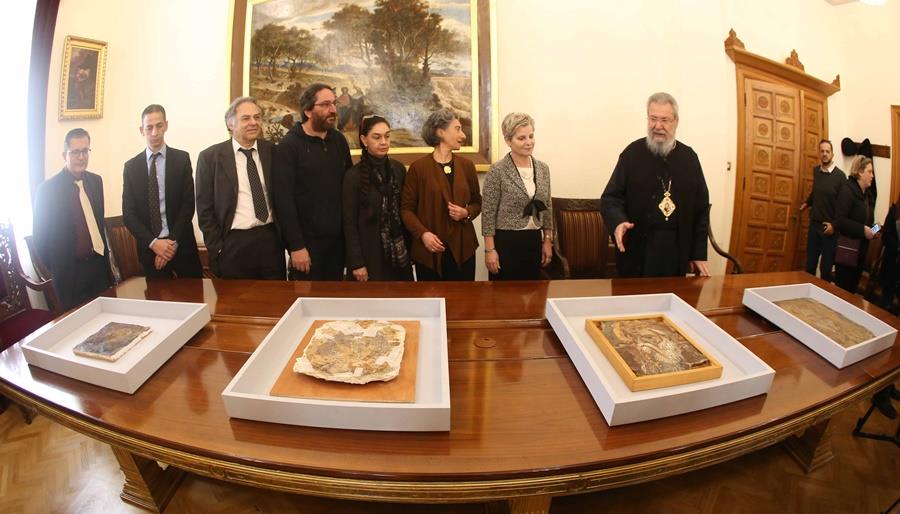 Ο Αρχιεπίσκοπος Κύπρου Χρυσόστομος συγχάρηκε «όλους, ξεκινώντας από την κ. Υπουργό, τη Διευθύντρια του Τμήματος Αρχαιοτήτων, τον εκπρόσωπο της Αστυνομίας, ο οποίος εργάστηκε πολύ προγραμματισμένα και αθόρυβα αυτά τα τελευταία χρόνια που είχαμε αρκετές επιτυχίες και βρισκόμαστε σήμερα στην ευχάριστη θέση να έχουμε τις τοιχογραφίες κοντά μας».