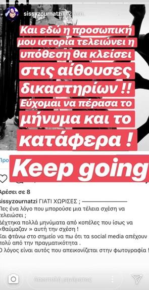 Και πρόσθεσε η Σίσσυ στην εκπομπή «Μαζί σου»: «Το πρώτο σκηνικό έγινε σε ένα μαγαζί. Με χαιρέτησε ένας πρώην σύντροφός μου. Ο ίδιος θίχτηκε και έφυγε. Εγώ τον ακολούθησα. Άρχισε να με σφαλιαρίζει και μου έριξε μια μπουνιά στο στήθος. Ήρθε μετά με το μηχανάκι και μου είπε να πάμε για ποτό. Έχουν έναν τρόπο μαγικό να σε υποτάσσουν αυτοί οι άνθρωποι. Έσπασα το κινητό μου για να του δείξω ότι δεν το χρειάζομαι. Με πήγε στο αμάξι μου και εκεί ξεκίνησε ο δεύτερος κύκλος ξυλοδαρμού. Συζητήσαμε πριν μπω στο Nomads και του είπα θέλω να γυρίσω και θέλω να σε δω διαφορετικό. Όταν βγήκα από παιχνίδι έγιναν άλλα δύο σκηνικά. Είχαμε χωρίσει πάνω από 4-5 φορές μετά το Nomads»!