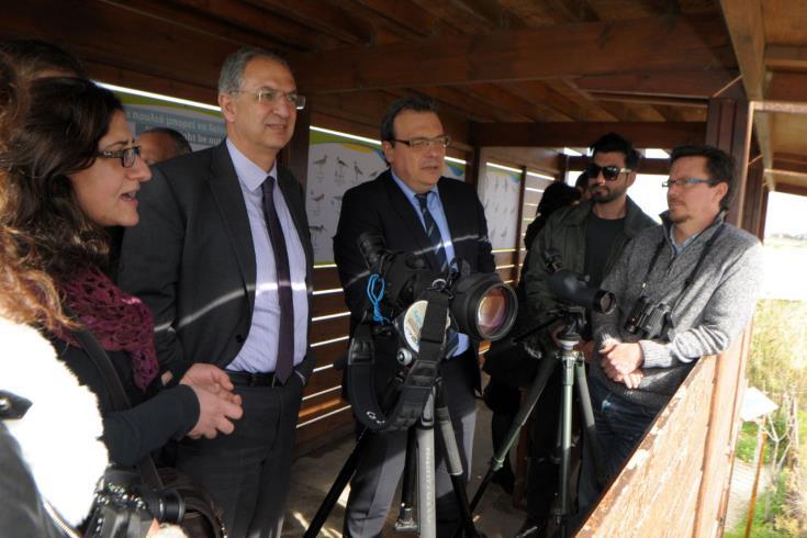 Συνοδευόμενοι από λειτουργούς του Τμήματος Δασών, του Τμήματος Περιβάλλοντος και του Τμήματος Αλιείας και Θαλασσίων Ερευνών, οι κύριοι Καδής και Φάμελλος έκαναν πτηνοπαρατήρηση από το παρατηρητήριο πουλιών που υπάρχει στη λίμνη και ενημερώθηκαν για δύο από τα έργα που πραγματοποιήθηκαν στη περιοχή.