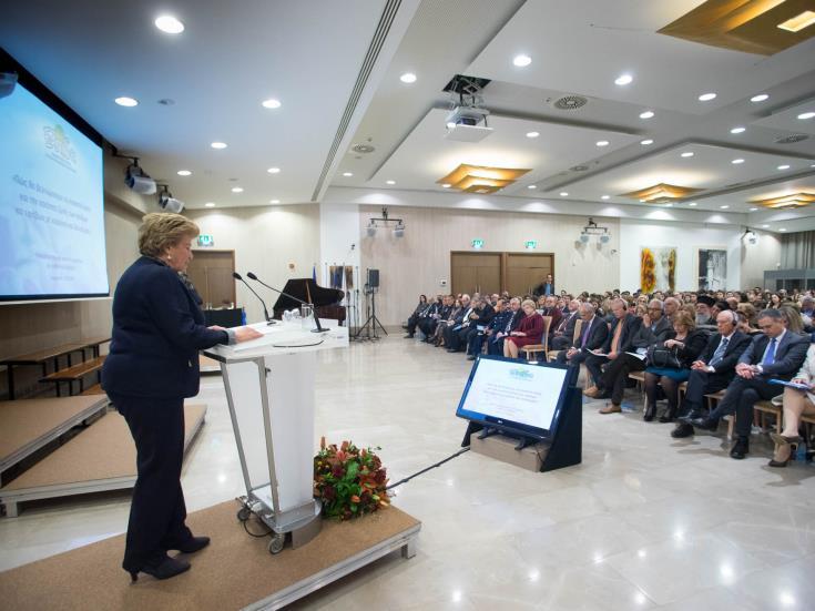Η συμβολική ημέρα κατά του παιδικού καρκίνου αποτελεί μίας πρώτης τάξεως ευκαιρία για την από κοινού ανάληψη περαιτέρω συντονισμένων δράσεων, στον αγώνα κατά του καρκίνου, είπε η επίτιμη Πρόεδρος του Ιδρύματος «Ελπίδα», σύζυγος του Προέδρου της Δημοκρατίας, Άντρη Αναστασιάδη, σε χαιρετισμό της στην εκδήλωση για την Παγκόσμια Ημέρα κατά του καρκίνου στα παιδιά και τους έφηβους, που πραγματοποιήθηκε σήμερα στο Προεδρικό Μέγαρο.
