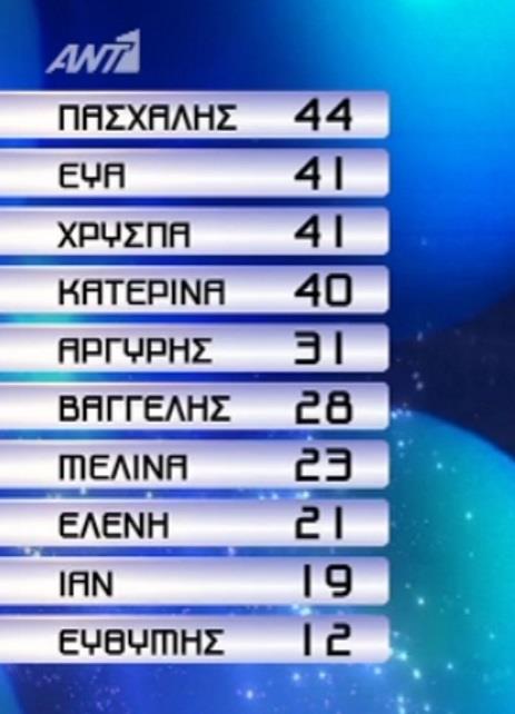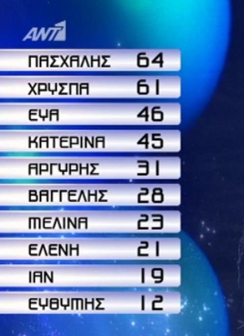 Η βαθμολογία μετά τα 5άρια των διαγωνιζόμενων