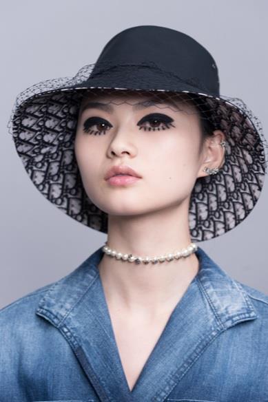 Για αυτήν την συλλογή, ο peter philips δημιούργησε ένα look που παρουσιάζει «μάτια μακιγιαρισμένα σκουρόχρωμα και γραφιστικά, με το άνω βλέφαρο καλυμμένο εξ’ ολοκλήρου με μαύρο χρώμα χρησιμοποιώντας το waterproof eyeliner crayon στην απόχρωση noir trinidad. Στην συνέχεια, με το Diorshow on stage liner στην απόχρωση matte black, σχεδίασα μια σειρά από αποστασιοποιηθέντες μικροσκελής, ευθείες γραμμές για να δημιουργήσω ένα αποτέλεσμα «αστεριού» γύρω από τα μάτια. Αυτές οι γραμμές σχεδιάστηκαν για να αποτελέσουν μια μορφή ατέλειας σε ένα «σκληρό» αποτέλεσμα. Στην συνέχεια, για να αναδείξω αυτό το κατάμαυρο μάτι, επικάλυψα τις βλεφαρίδες πρώτα με Diorshow maximizer 3d και έπειτα με τη μασκαρά Diorshow pump’n’volume στην απόχρωση black pump για τέλεια καμπύλη. Τέλος, επαναπροσδιόρισα το σχήμα των φρυδιών, διατηρώντας τα φυσικά, με το Diorshow brow styler».