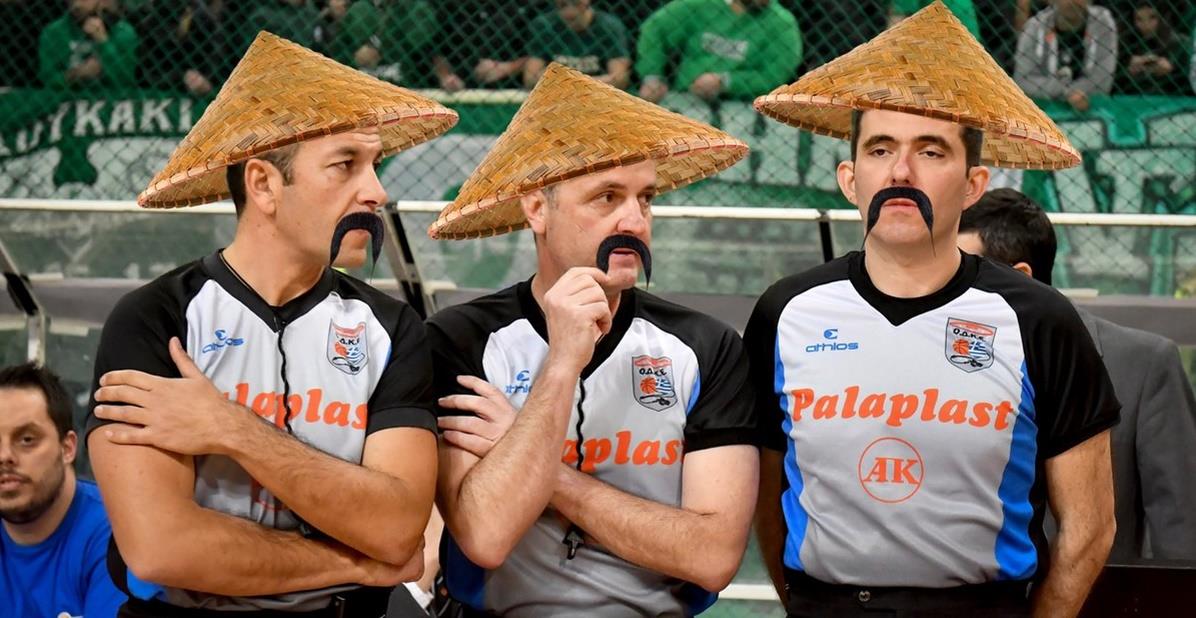 Συγκεκριμένα, η ερυθρόλευκη ΚΑΕ, σε σελίδα κοινωνικής δικτύωσης, παρουσίασε τους τρεις διαιτητές που σφύριξαν στο παιχνίδι του ΟΑΚΑ με κινέζικη αμφίεση.