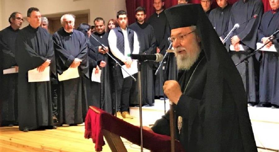Η συμπλήρωση εξήντα δύο ετών από την μαρτυρική θυσία του ήρωά μας Ευαγόρα Παλληκαρίδη, δημιουργεί σε όλους μας αισθήματα βαθιάς συγκίνησης και ξυπνά μνήμες πικρίας, αγωνίας και πατριωτισμού, ανέφερε ο Αρχιεπίσκοπος Κύπρου Χρυσόστομος σε χαιρετισμό του στο Φιλολογικό Μνημόσυνο του Ευαγόρα Παλληκαρίδη που πραγματοποιήθηκε απόψε στην Αίθουσα Τελετών του Λυκείου Α’ Εθνάρχη Μακαρίου του Γ’ στην Πάφο.
