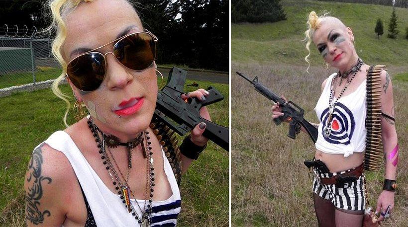 Στη φωτογραφία με το όπλο πάνω στον ώμο της, ποζάρει ως Tank Girl, ένας χαρακτήρας βρετανικού κόμικ της δεκαετίας του 1980.