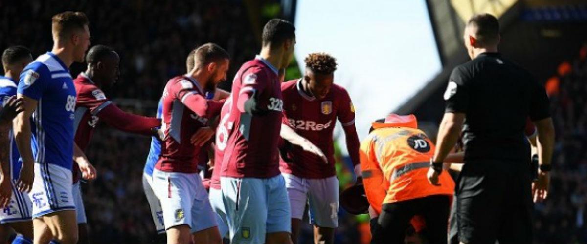 Κατά το 10ο λεπτό του αγώνα ένας οπαδός της Μπέρμιγχαμ εισέβαλε στον αγωνιστικό χώρο και γρονθοκόπησε από πίσω τον αρχηγό των «χωριατών», Τζακ Γκρίλις στο κεφάλι. Φυσικά, οι άνδρες της ασφάλειας του γηπέδου έπιασαν τον δράστη και τον παρέδωσαν στην αστυνομία. Όσο για τον παίκτη, αφού δέχθηκε τις φροντίδες του ιατρικού τιμ, συνέχισε να αγωνίζεται κανονικά.
