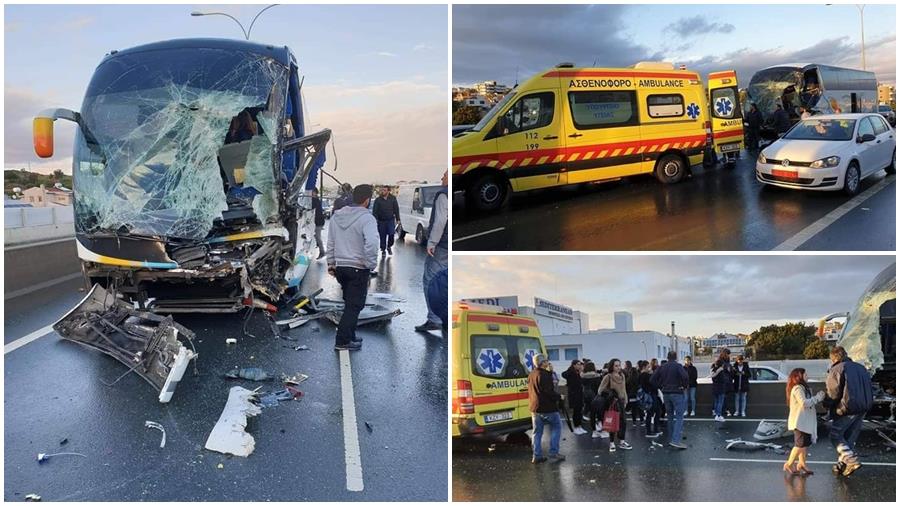 Σύμφωνα με την Αστυνομία, κάτω από συνθήκες που διερευνώνται, ο οδηγός του λεωφορείου, συγκρούστηκε με πλατφόρμα που μετέφερε όχημα και στη συνέχεια προσέκρουσε στα κιγκλιδώματα.