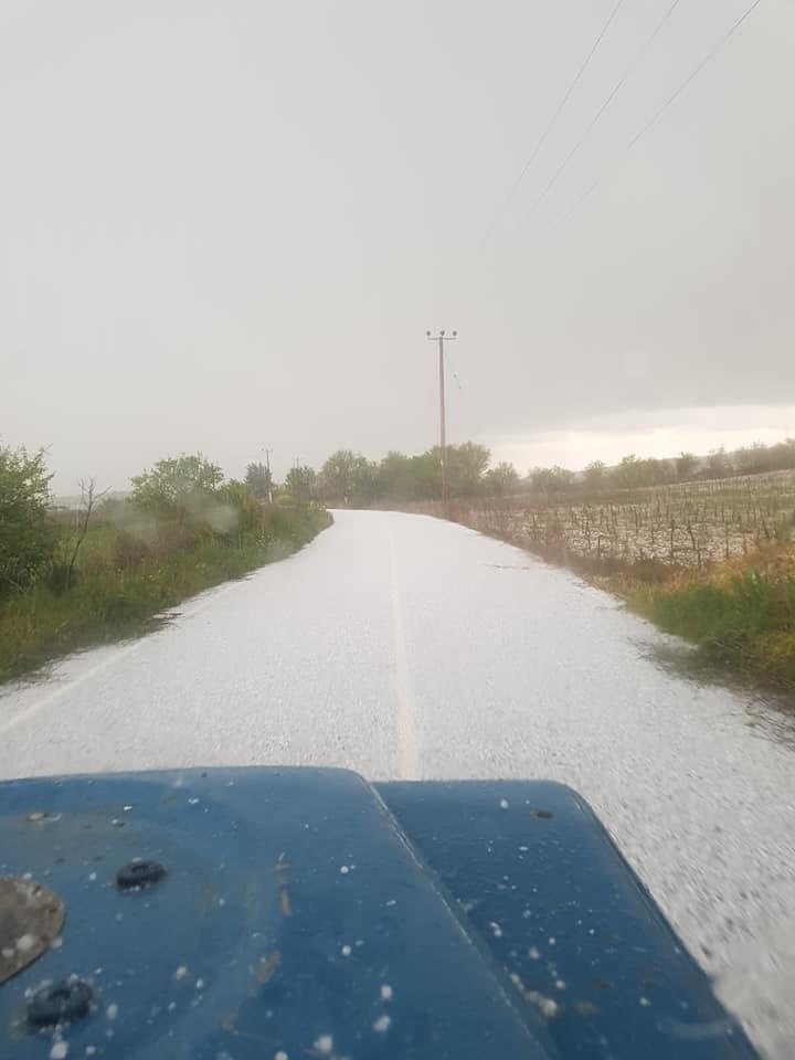 Χαλαζόπτωση σημειώνεται και σε περιοχές της επαρχίας Πάφου. Ο δρόμος από Γιόλου προς Στρουμπί, λόγω της χαλαζόπτωσης, έχει καταστεί ολισθηρός.