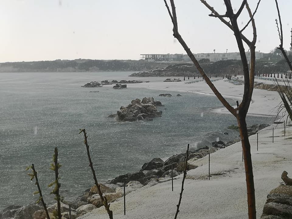 Άσπρισε η παραλία της Πέγειας από τη χαλαζόπτωση (pics-video)