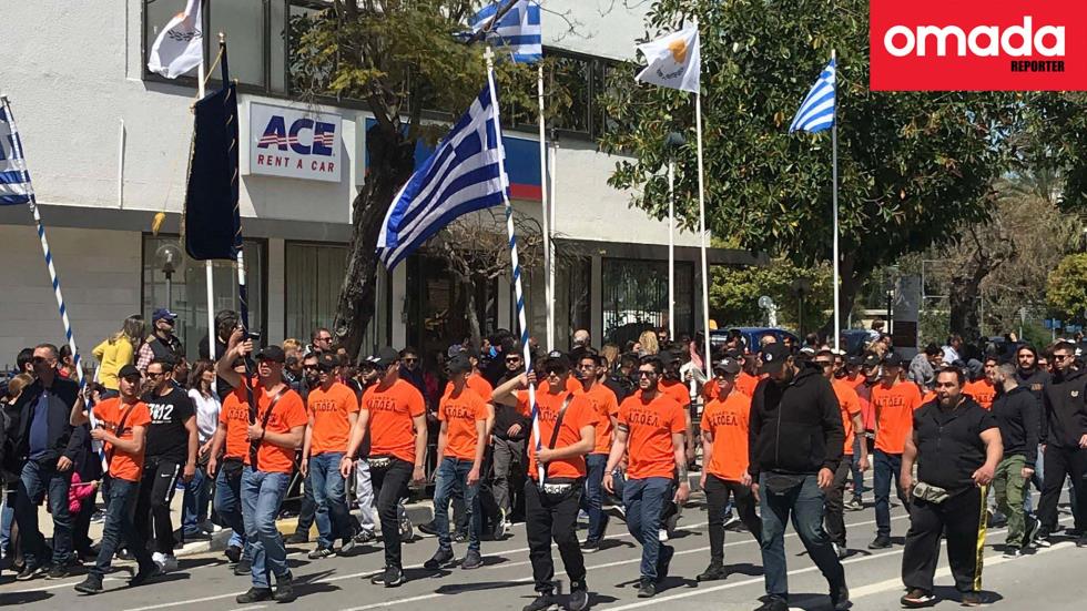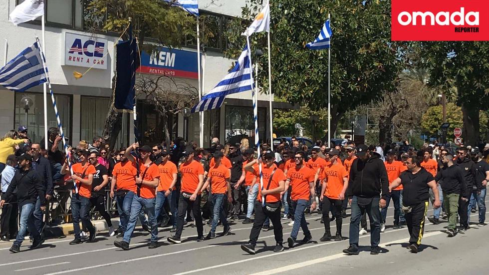 Το παρών του στη μαθητική παρέλαση της 25ης Μαρτίου έδωσε ο Παν.Συ.Φι ΑΠΟΕΛ, με πορτοκαλί μπλουζάκια.