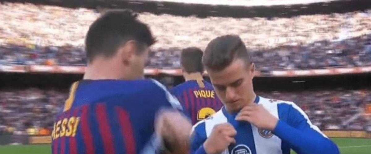 Ο 20χρονος ποδοσφαιριστής της Εσπανιόλ, Αντριά Πεδρόσα μετά τη λήξη της αναμέτρησης στο Καμπ Νου με την Μπαρτσελόνα πλησίασε τον Λιονέλ Μέσι και του ζήτησε να αλλάξουν φανέλες. Ο Αργεντινός σούπερ σταρ της Μπάρτσα δέχθηκε και ο Πεδρόσα γύρισε με ένα χαμόγελο στα αποδυτήρια παρά την ήττα στο καταλανικό ντέρμπι.