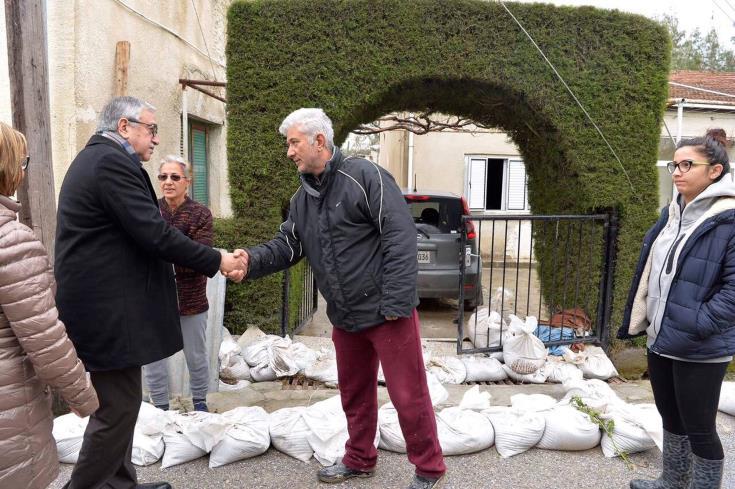 Στις περιοχές που επλήγησαν από τις βροχές των τελευταίων δύο ημερών μετέβη σήμερα ο Τ/κ ηγέτης Μουσταφά Ακιντζί, που συνομίλησε και με ιδιοκτήτες σπιτιών και υποστατικών που υπέστησαν ζημιές, αλλά και με εργαζόμενους στα συνεργεία καθαρισμού των αρμόδιων «υπουργείων» και «δήμων».