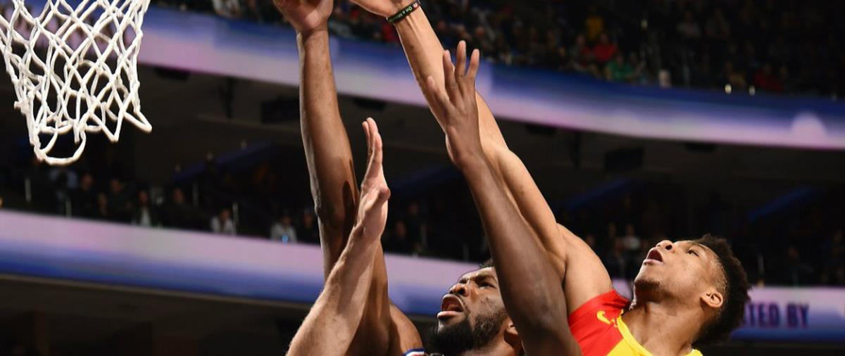 Εντυπωσιακό μπλοκ έδωσε ο Γιάννης Αντετοκούνμπο στον Τζόελ Εμπίντ, σταματώντας στον αέρα τον σέντερ των Φιλαδέλφεια 76ερς.