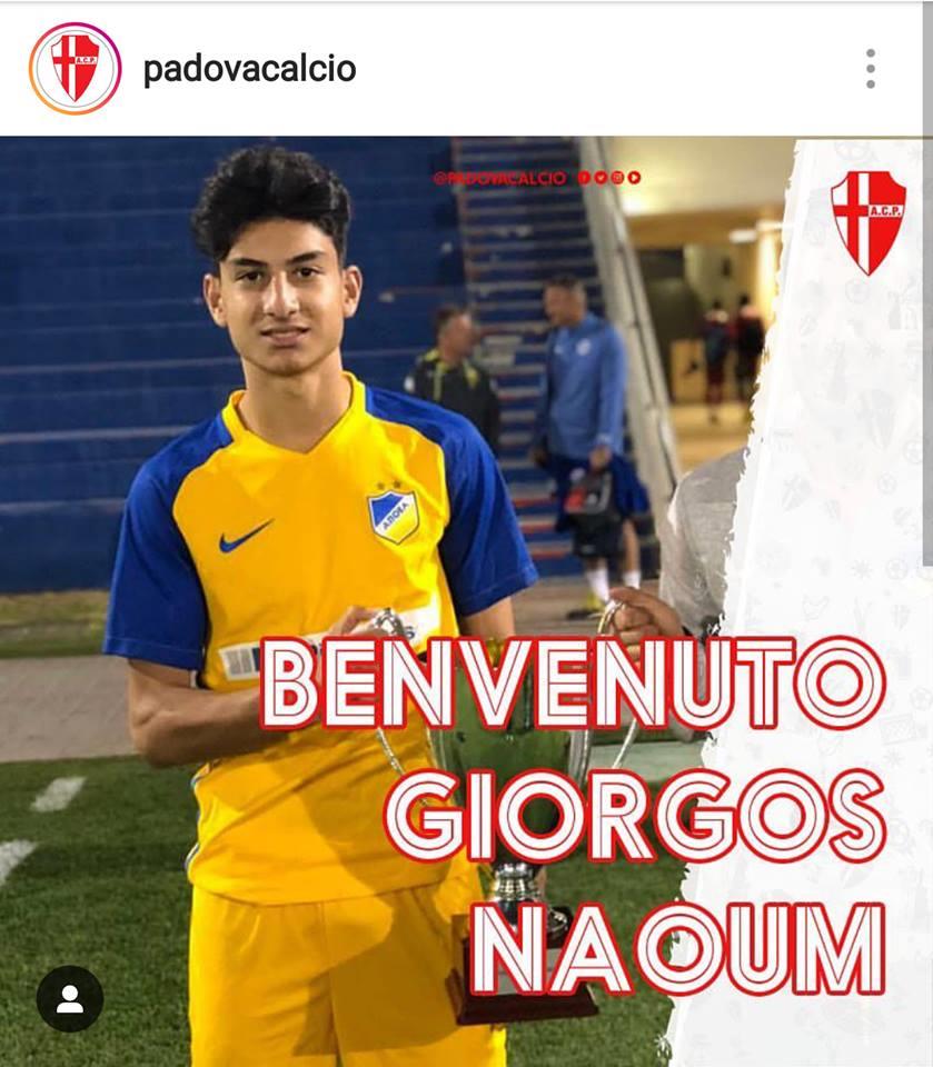 Επιπρόσθετα, τον περασμένο Φεβρουάριο ο Γιώργος Ναούμ ανακοινώθηκε ότι αρχίζει προπονήσεις με την Πάντοβα, η οποία αγωνίζεται στη Serie B. Αξίζει να σημειωθεί ότι ο 18χρονος είναι ο δεύτερος ποδοσφαιριστής, ο οποίος πέρασε από τις ακαδημίες του ΑΠΟΕΛ και πλέον βρίσκεται στην ιταλική ομάδα. Προηγουμένως είχε ενταχθεί στην Πάντοβα και ο Αγάπιος Βρίκκης, ο οποίος το καλοκαίρι του 2018 είχε μεταπηδήσει από τους γαλαζοκιτρίνους στην Τορίνο και πρόσφατα μεταφέρθηκε στην Πάντοβα.