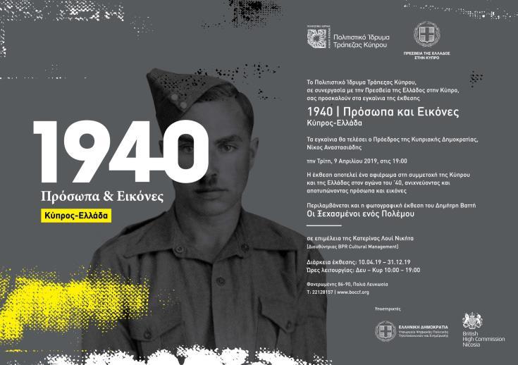 Πραγματοποιούνται την Τρίτη 9 Απριλίου τα εγκαίνια εμβληματικής έκθεσης, την οποία συνδιοργανώνει η Πρεσβεία της Ελλάδας στην Κύπρο με τίτλο «1940 | Πρόσωπα και Εικόνες. Κύπρος - Ελλάδα».