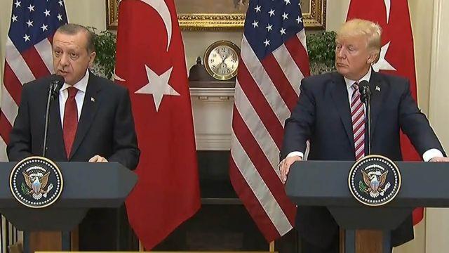 Ο Ερντογάν «στο θέμα των S-400 έχουμε καθορίσει τον οδικό μας χάρτη, έχουμε κάνει βήματα. Όσοι μας λένε να εγκαταλείψουμε τα σχέδιά μας, όσοι μας κάνουν συστάσεις δεν μας γνωρίζουν καλά. Εφόσον κάναμε ένα συμβόλαιο, εφόσον κλείσαμε μια συμφωνία, τότε η δουλειά αυτή έχει τελειώσει. Είναι κυριαρχικό μας δικαίωμα, είναι δική μας η απόφαση» διεμήνυσε σε κοινή συνέντευξη Τύπου με τον Βλαντίμιρ Πούτιν.