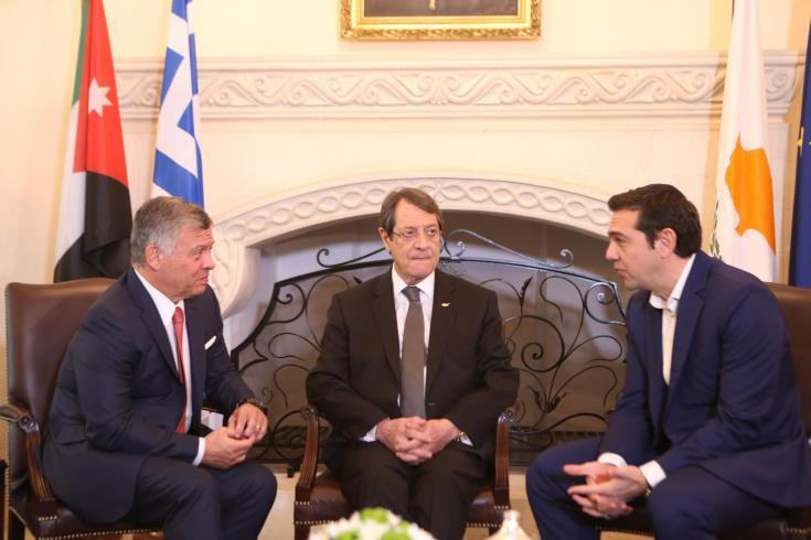 Επεσήμανε πως "με τη δεύτερη Σύνοδο Κορυφής της Τριμερούς Κύπρου – Ελλάδας – Ιορδανίας, η περαιτέρω προώθηση αυτής της σχέσης αναπτύσσει μια γεωγραφία των τριμερών σχέσεων που καλύπτει ολόκληρη την περιοχή της Ανατολικής Μεσογείου και της Εγγύς Ανατολής".